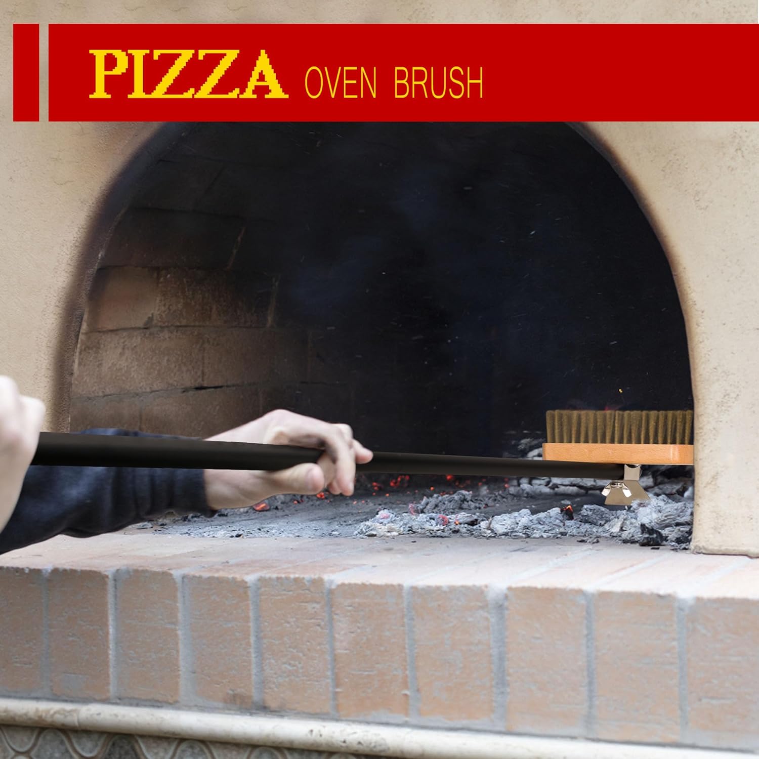 - The oven brush has a detachable 32 “long handle and a metal scraper on the back, making it perfect for penetrating deep into the pizza oven, removing residual burnt food, and thoroughly cleaning the back of the oven within a safe distance.