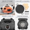 - [Safe & Ergonomic Design]: The oven’s lid features two cool-touch handles, ensuring safe operation even when the surface is heated rapidly. The convenient handles on the stone plate facilitate easy movement and rotation during cooking. The non-slip bottom, reinforced with rubber pads, guarantees stability and safety during use.