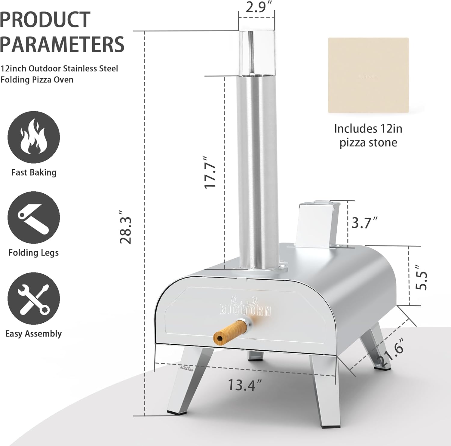 - 【Ultra-Portable & Ease of Assembly】 The durable and lightweight pizza oven equipped with folding legs, requires minimal assembly without tools, it can quickly come apart for easy cleaning, storage and it weighs just 25lb, ideal for the backyard or outdoor cooking events