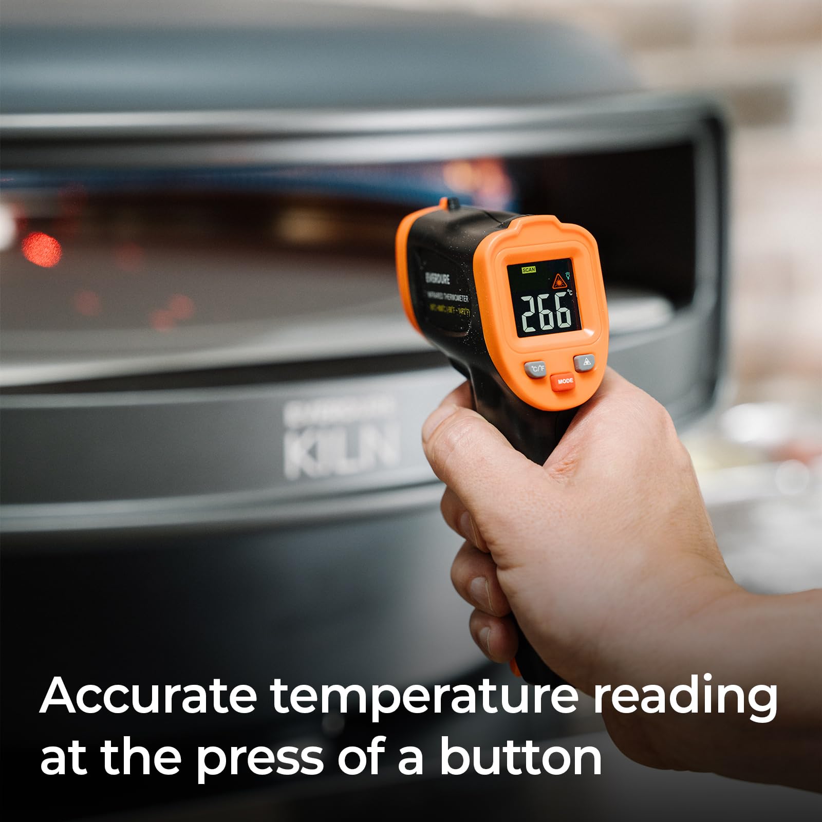 Details: Achieve the ideal foundation for your pizza by accurately determining the optimal cooking temperature of your pizza stone, using the Everdure Infrared Thermometer – the ultimate instrument for precise temperature assessment. With advanced infrared technology, our non-contact design allows you to simply point the gun towards the pizza stone, and instantly obtain an accurate temperature reading. Optional Celsius or Fahrenheit readings provide the flexibility you need for your cooking preferences. Whether day or night, easily read your oven’s temp with the LED-backlit digital display. With laser readings and a large temperature range of -58 to 1472 degrees Fahrenheit, think beyond just pizza with this multi-functional tool. Battery powered for convenience, this temperature gun is a must-have for any homeowner, chef, cook, or pizza enthusiast. Say goodbye to guessing and hello to perfectly cooked pizza every time! Pairs well with the Everdure KILN and Everdure Pizza Accessory Line.