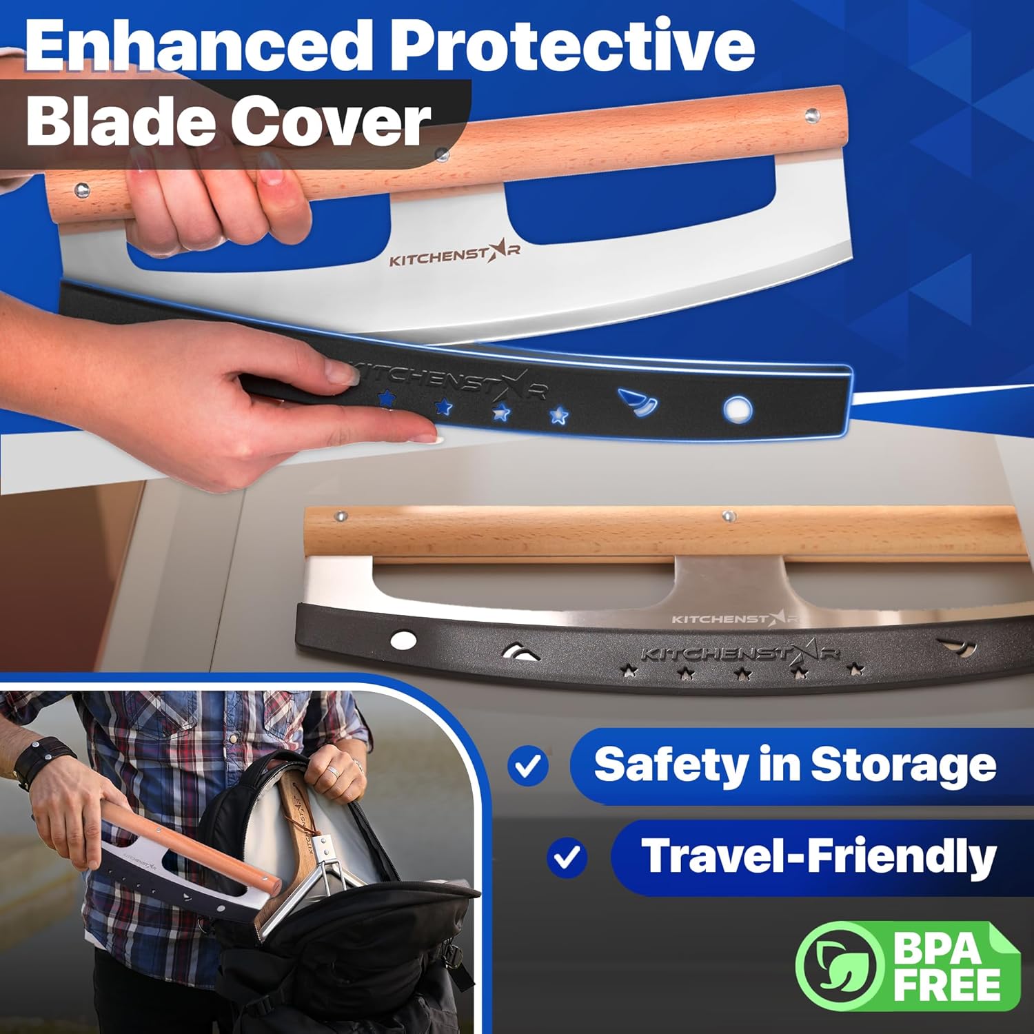 - Protective Blade Cover Included – Ensures safe storage and portability while preserving edge sharpness, enhancing the value of this pizza cutting knife