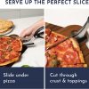 - 5-IN-1 KITCHEN TOOL – Perfect for cutting fruit, vegetables, bread, meat, and of course PIZZA! Slice through any pizza size, and the spatula shoe acts as both pizza knife/pizza cutter and server.