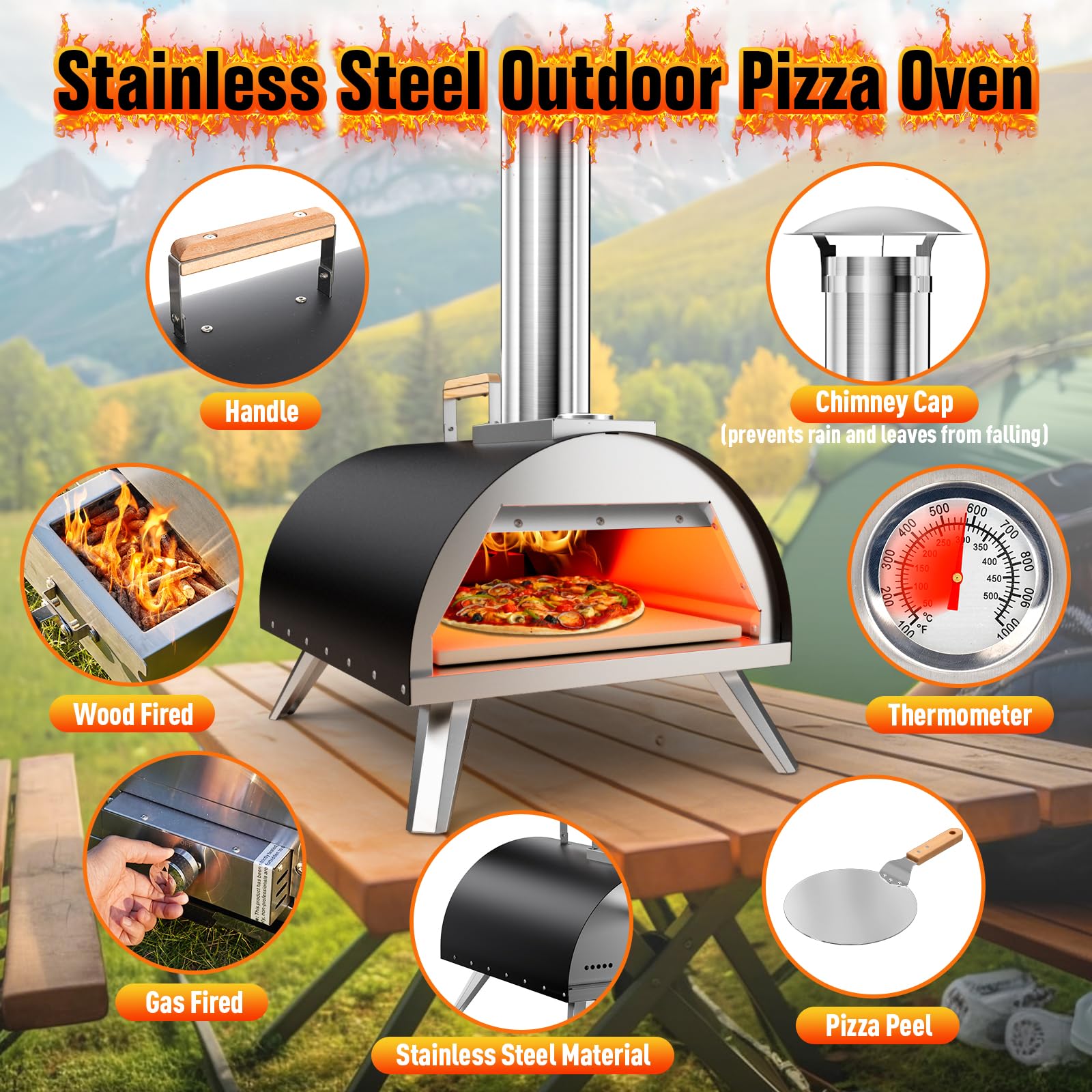 - Unleash Your Culinary Creativity: This multi-fuel pizza oven out lets you choose your cooking adventure. Use wood or charcoal for authentic smoky flavors that infuse your pizzas and dishes with a delicious wood-fired taste. Or, switch to gas for effortless temperature control and maximum cooking convenience. The choice is yours!