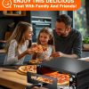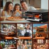 - EASY TO MONITOR – Thanks to the built-in light and explosion-proof heat-resistant tempered glass window, you can monitor the baking progress in real time without opening the door of the electric pizza oven countertop.