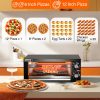 - Wide application:The indoor pizza ovens countertop can bake various food, such as pizza up to 12in, pretzels, Portuguese, bread, cakes, pies, pastries, baguettes and chicken wings,etc.