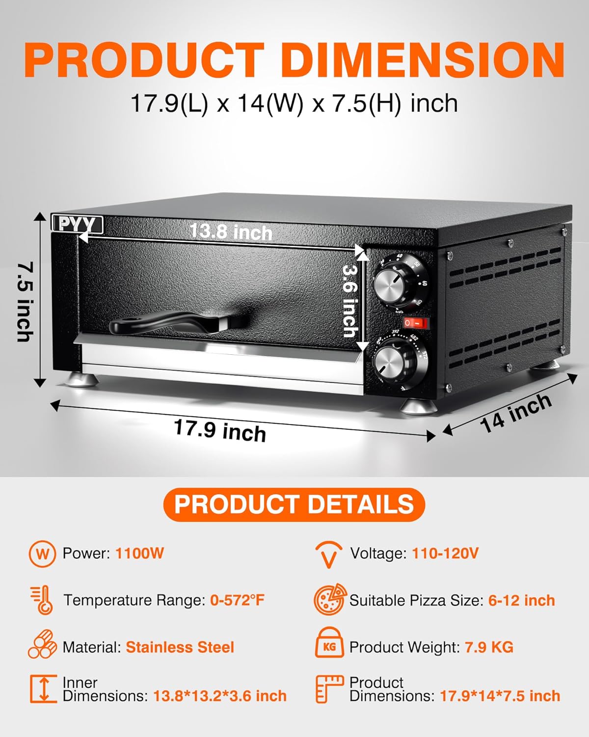 - Easy to clean: PYY pizza oven indoor electric covered with wrinkle black paint is oil stain and fingerprint resistant and easy to clean. The removable crumb tray makes it easy to remove crumb