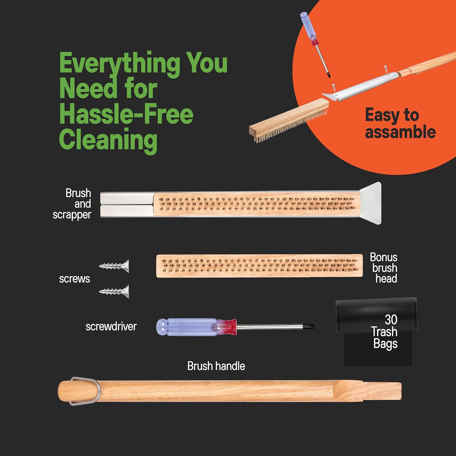 - Accessories Included: The Scrubit Pizza Oven Brush and Scraper includes 2 Brush and Heads, the Brush handle, a screwdriver and screws for quick and easy assembly, and 30 trash bags as an added accessory for choosing Scrubit. Quality and customer loyalty is our Moto and we are 100% sure you won’t be disappointed when purchasing from Scrubit. So come on and enjoy your new Pizza Oven cleaning brush and all its accessories.