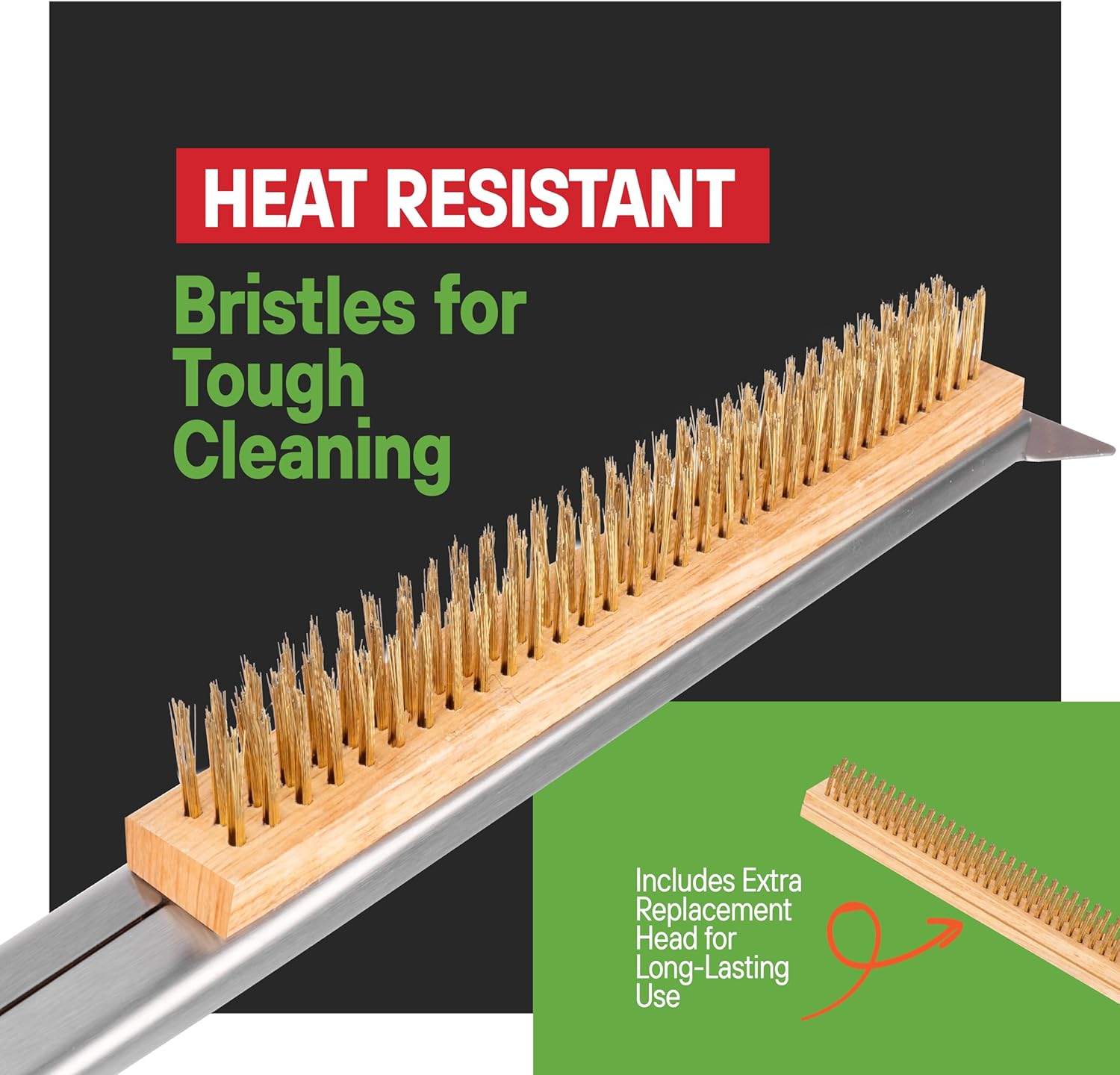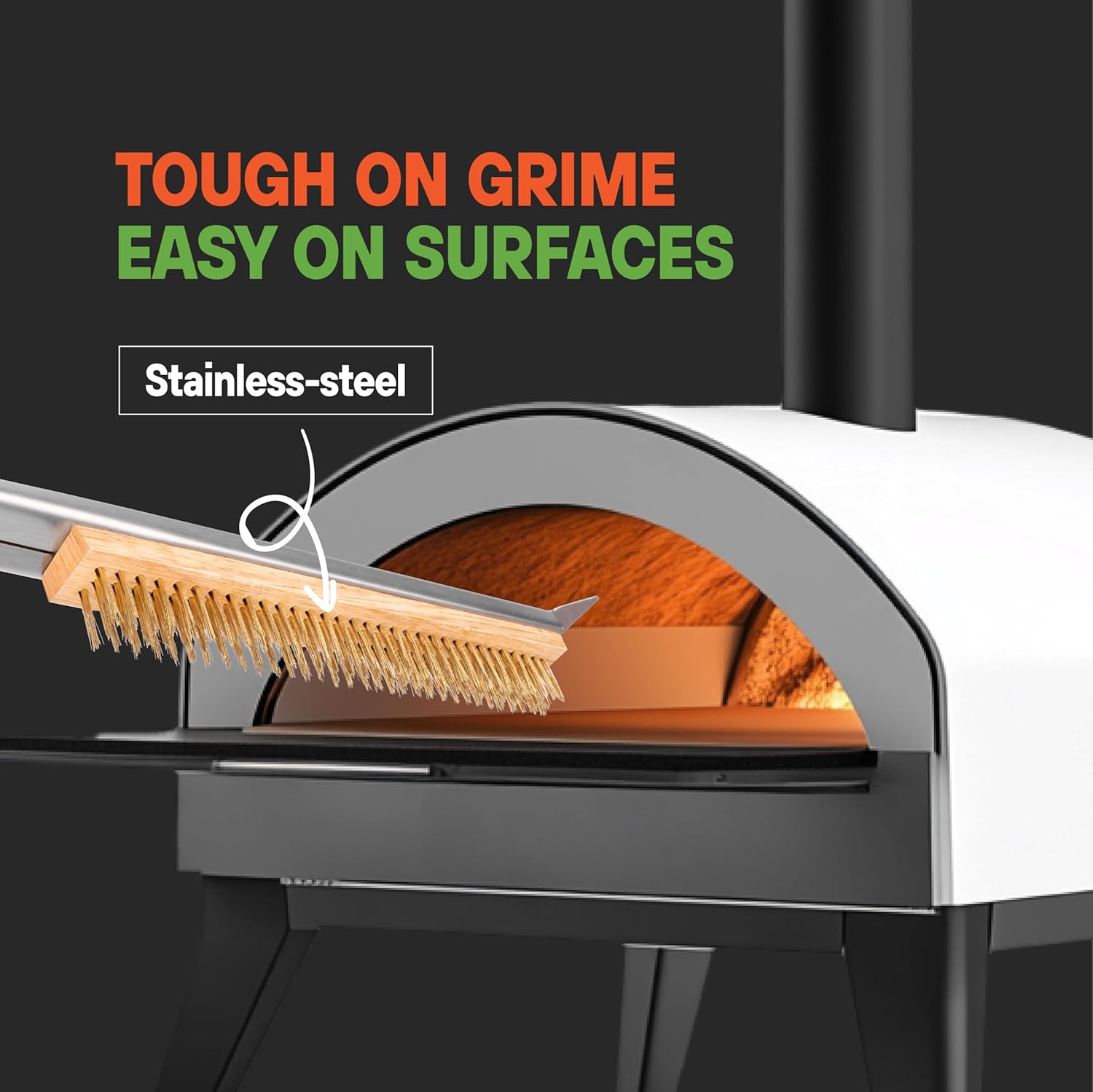 - Tough On Grime: Tired of all the scrubbing and Scraping after every Pie? We also are! With its Stainless-Steel Bristles and tough-on-grime Pizza Oven Scraper you’ll have all the all the dirt and grime off in minutes. Its 2-in-1 design was created to speed up both the brushing and scraping at the same time, so you can clean quickly and efficiently and get to baking your next Pie.