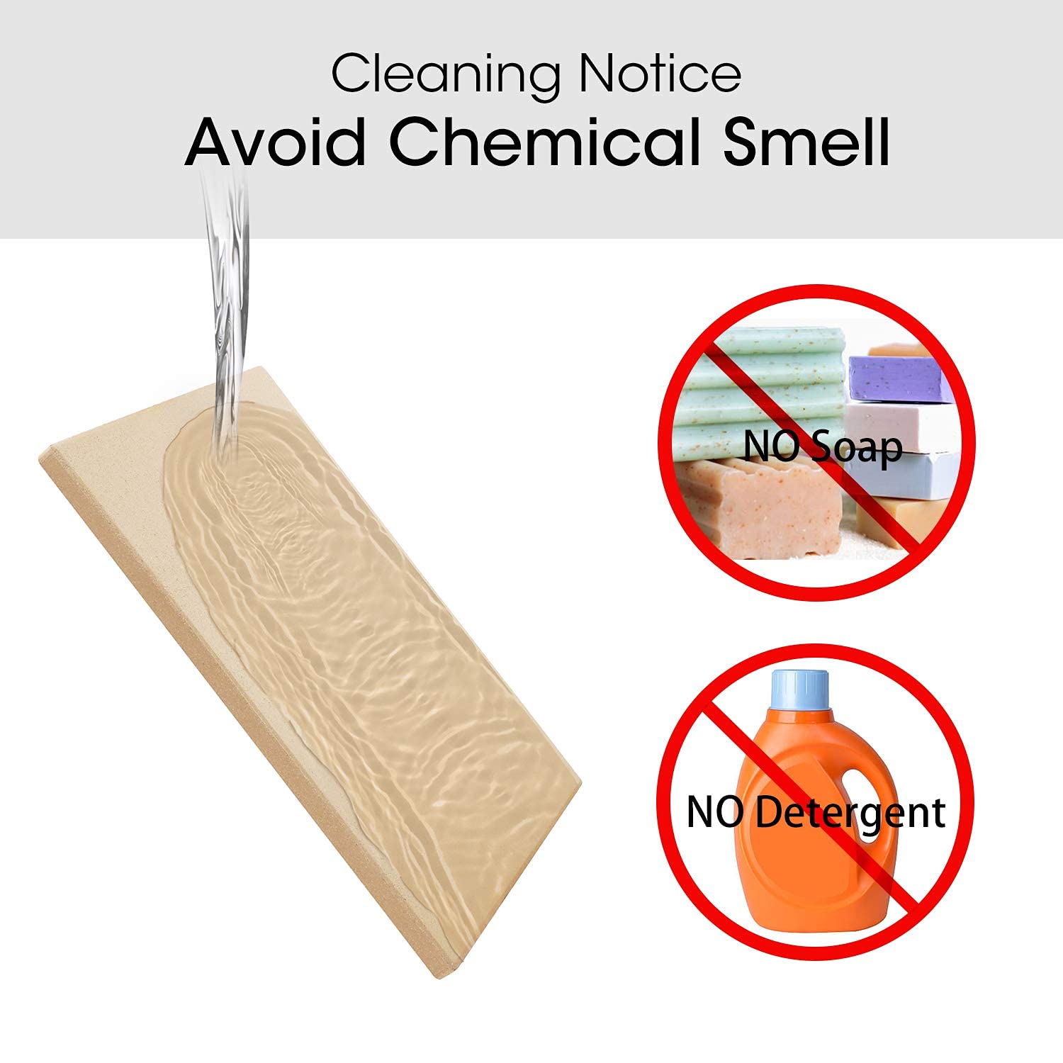 - [Easy to Clean] Use scraper to remove excess food, when the stone has cooled down, hand wash with warm water or scrubbing with a brush if accessories. [Warning] Never use soap or detergent to clean the stone! Never season cordierite stone with oil or grease!