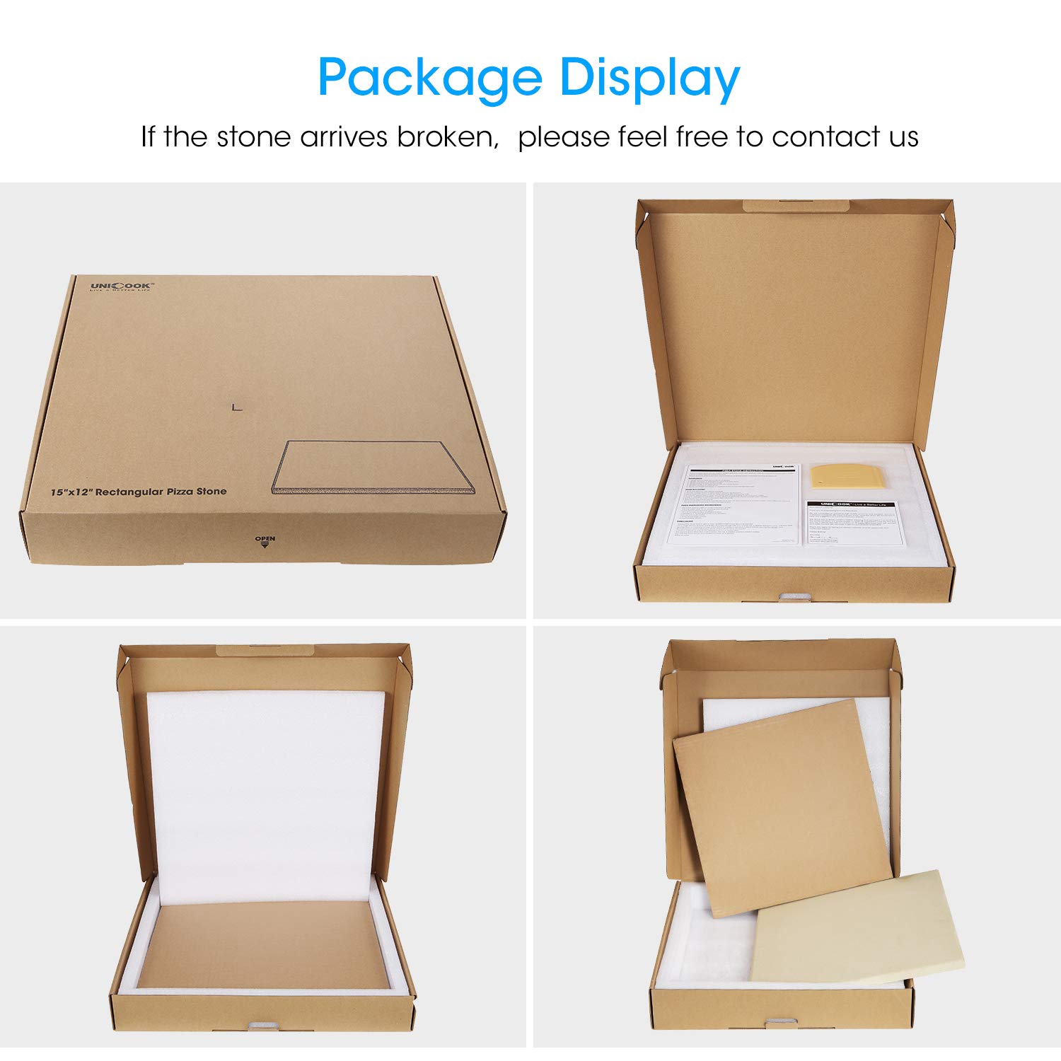 - [Reliable Customer Service] Customer satisfaction and product quality are our lifelong pursuit. If you received a damaged stone or you need any questions about Unicook pizza stones, please don’t hesitate to contact us.